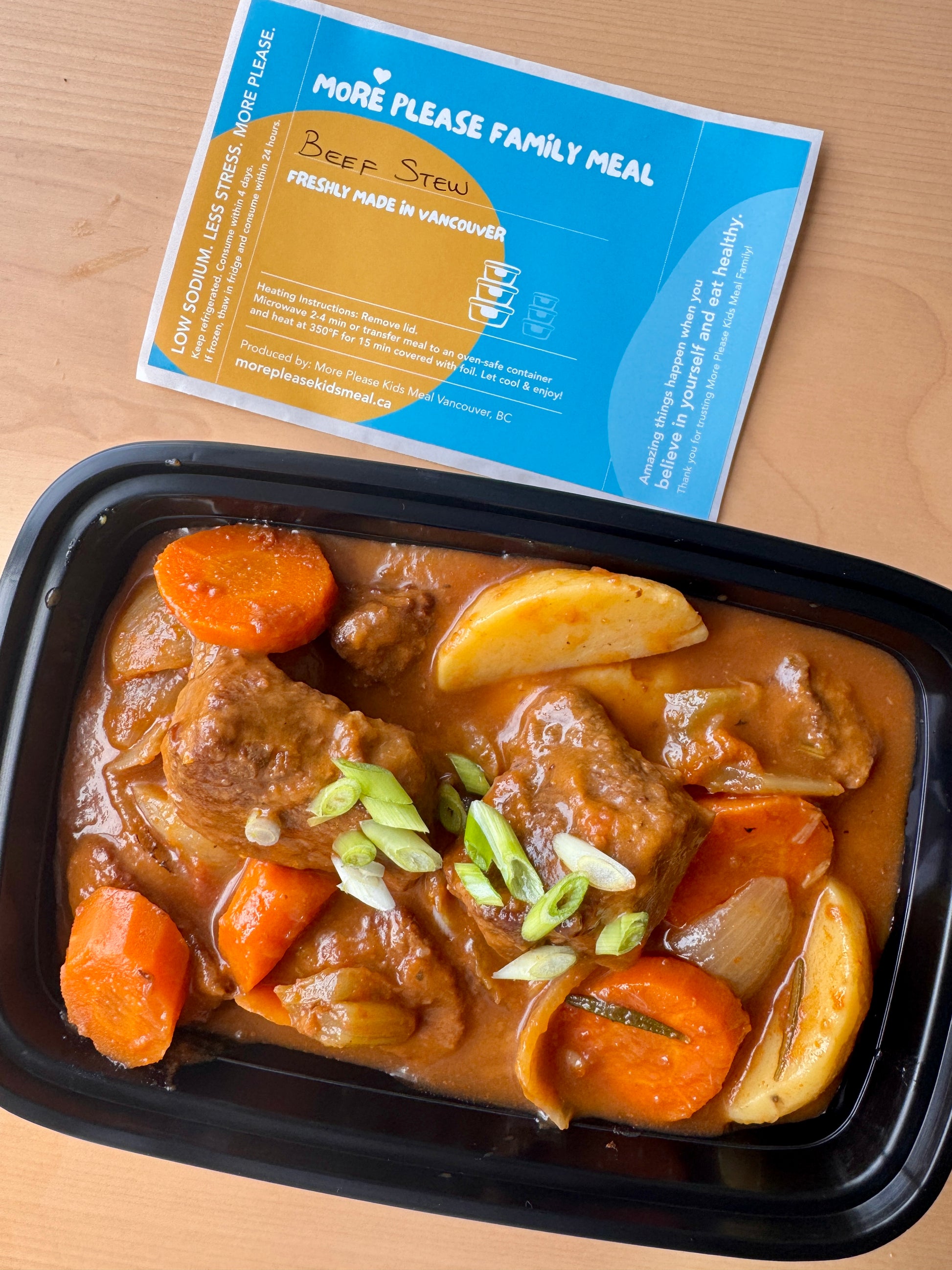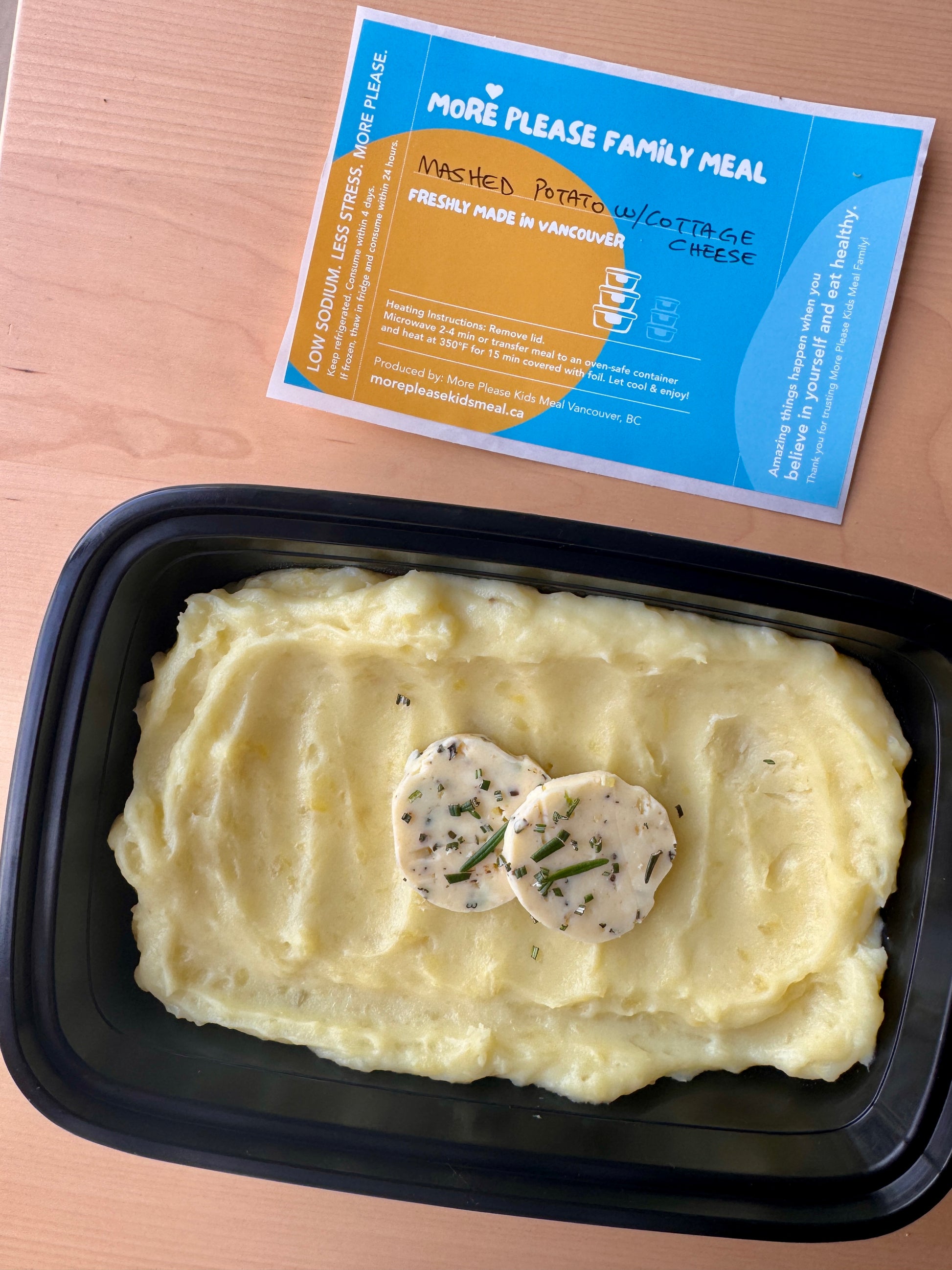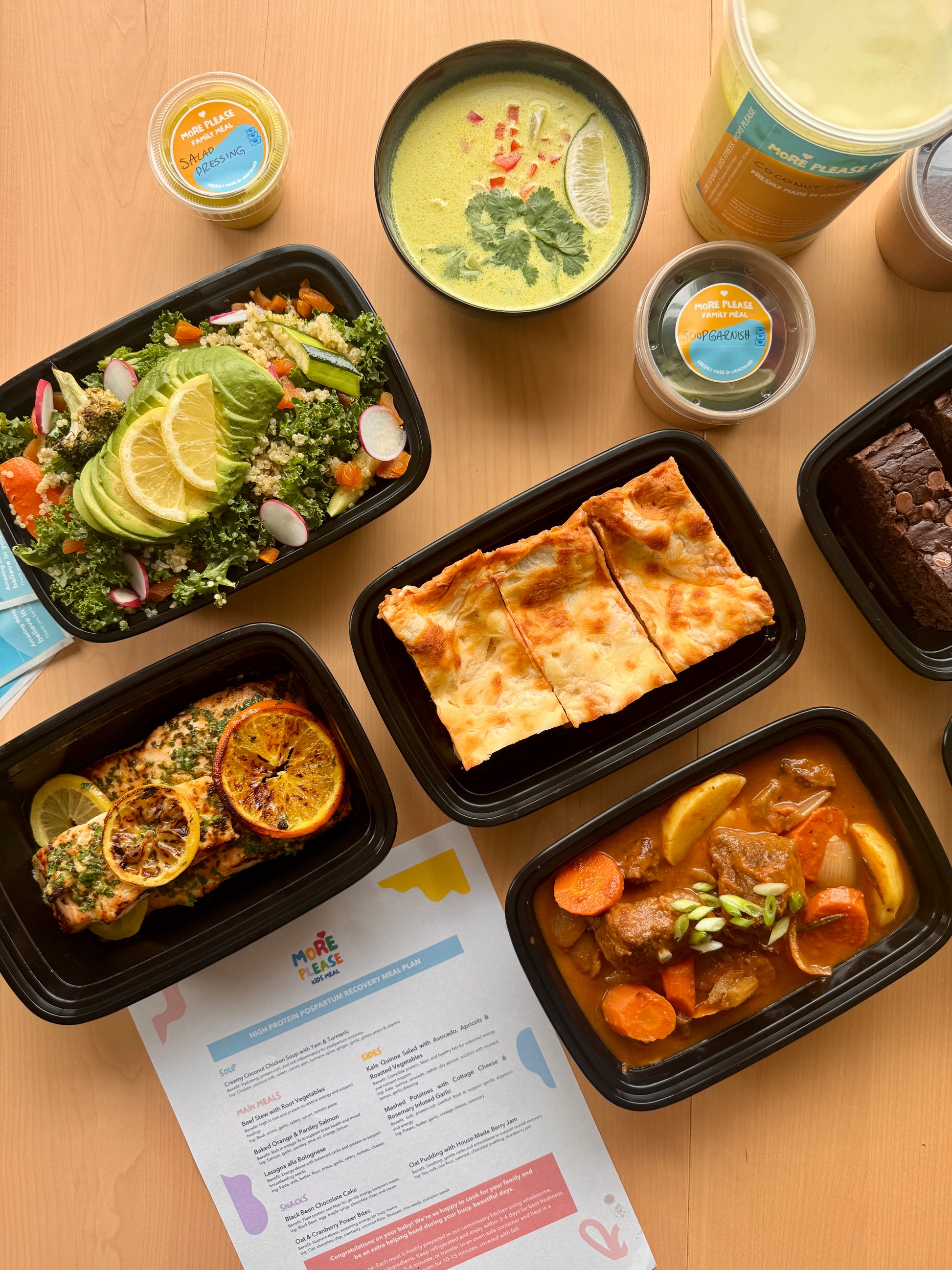 All meals are freshly prepared in a certified commercial kitchen in Vancouver, BC. Our family meals serve 3–4 people.